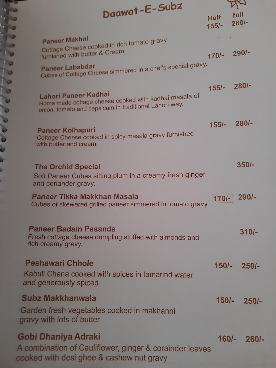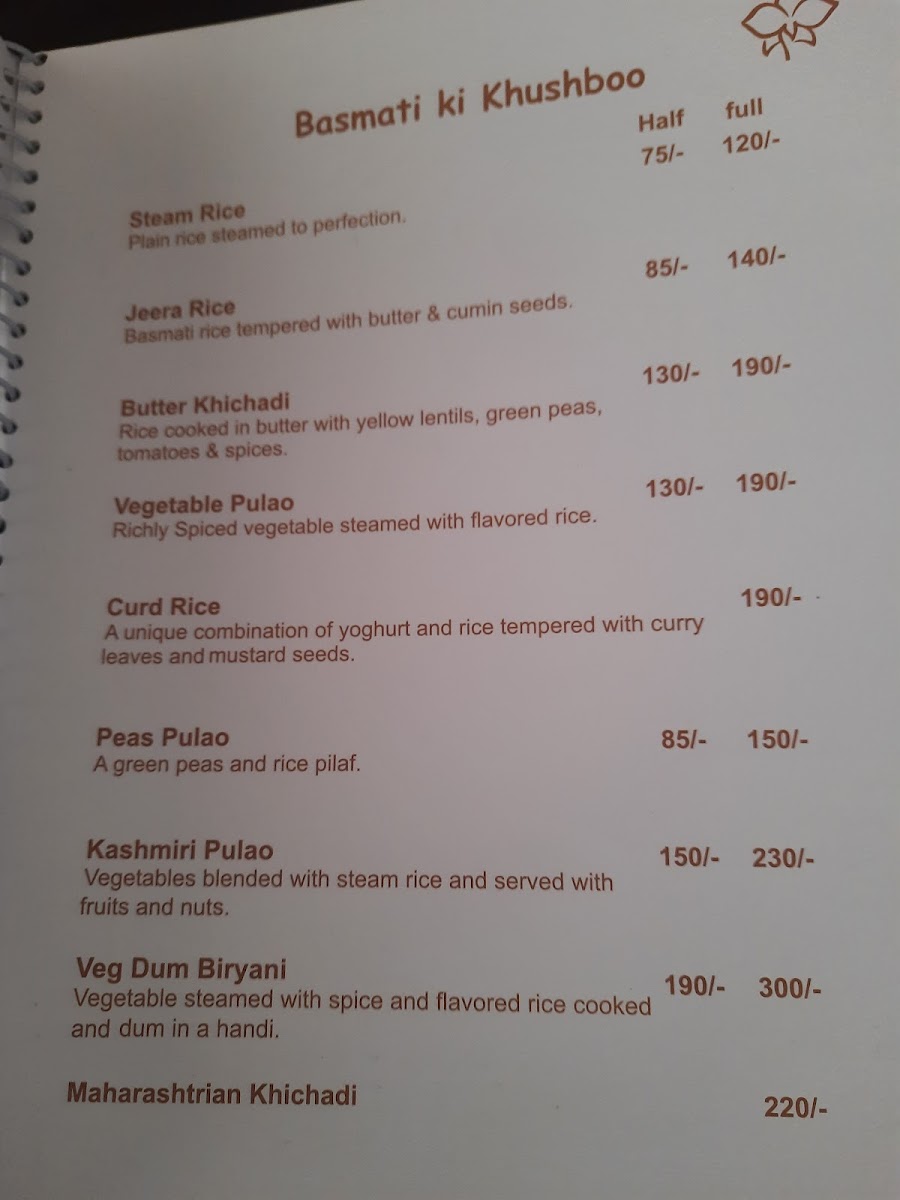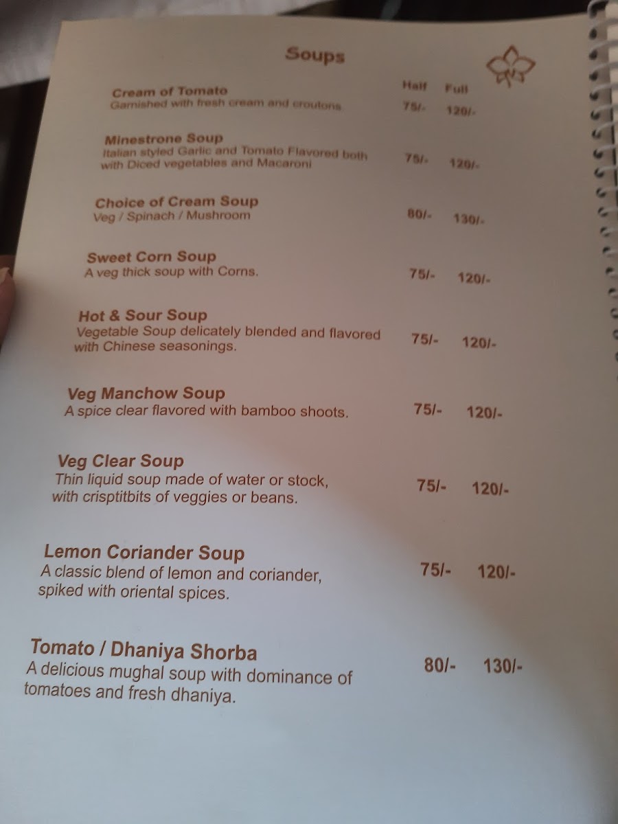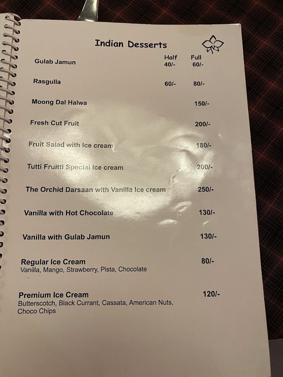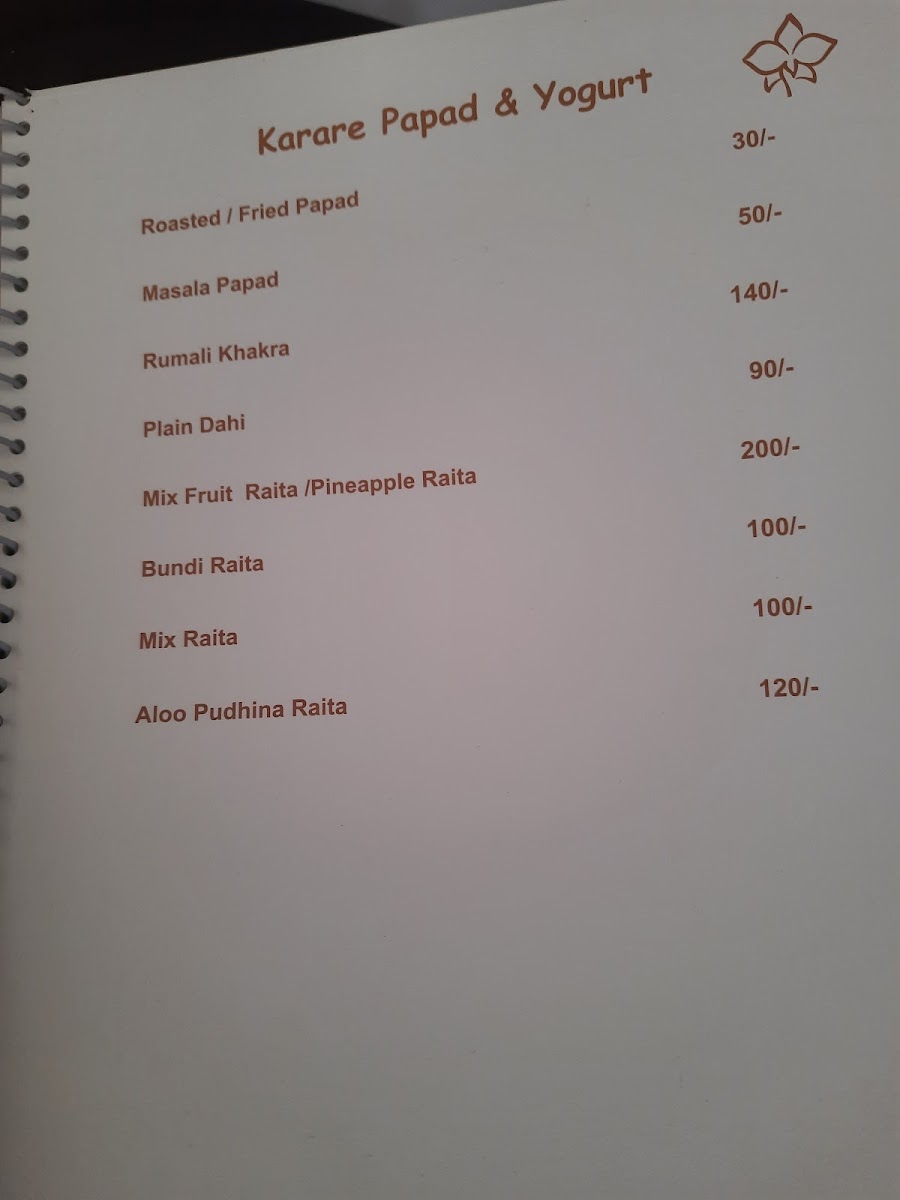 Mahasagar Orchid Veg Restaurant Menu